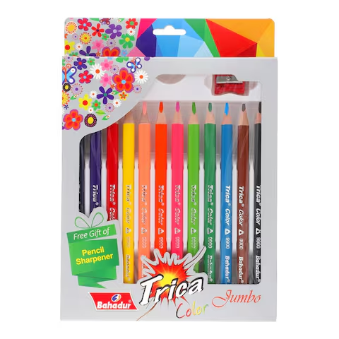 Unleash your creativity with the Bahadur Trica Jumbo Color Pencil Pack Of 12! These vibrant, high-quality pencils provide smooth and precise color for all your drawing and coloring needs. With a pack of 12 colors, you'll have plenty of options to bring your ideas to life. Perfect for artists of all ages.