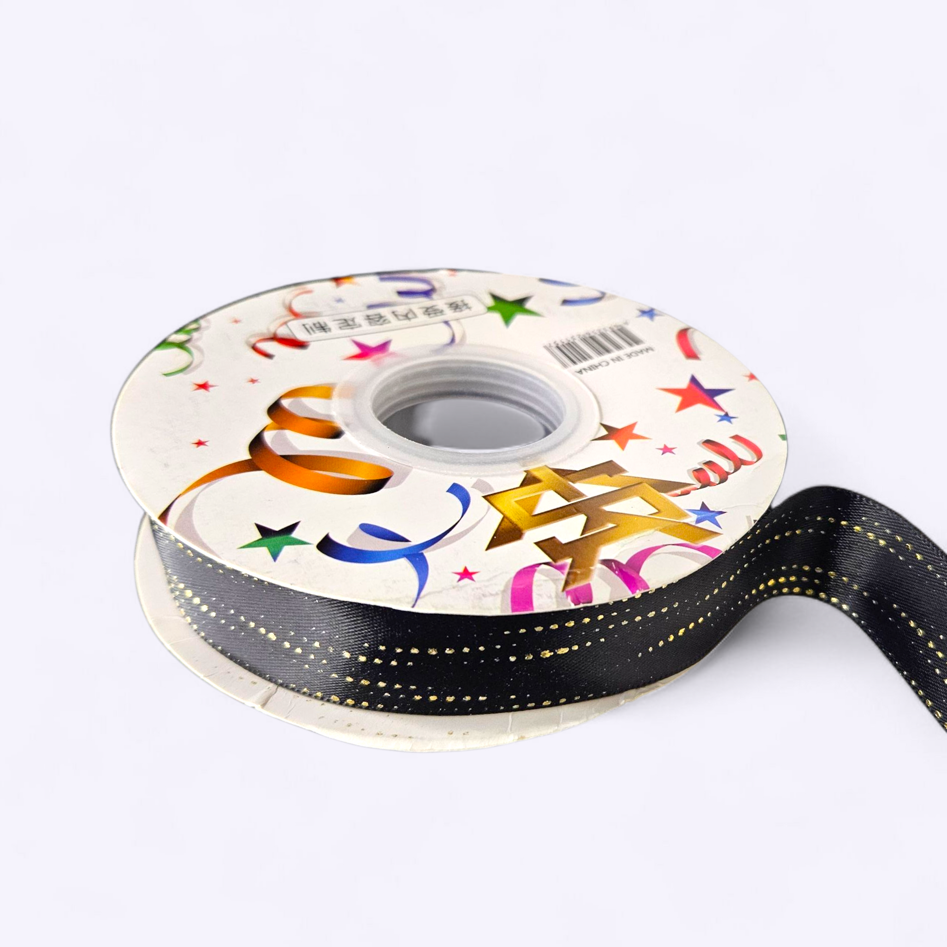 Imported golden dots satin ribbon black, gold foil printed 35 yards, 1 inch width