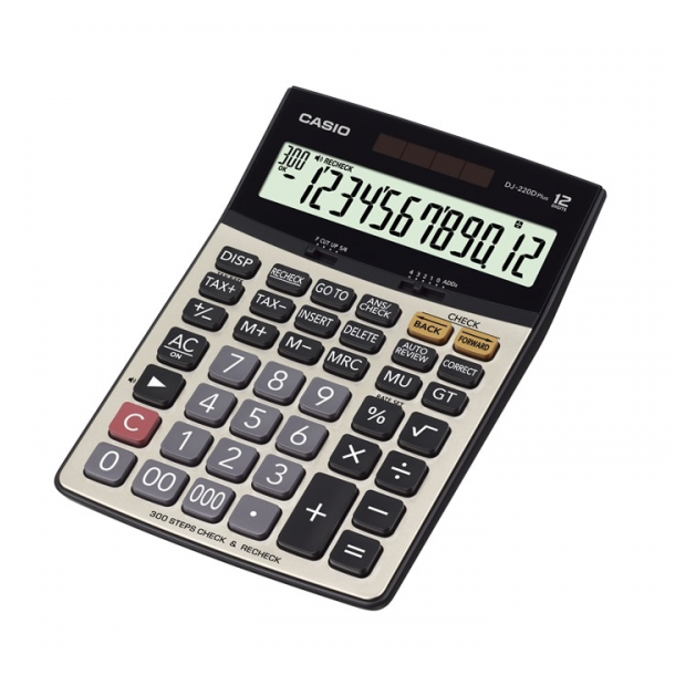 The Casio Calculator Dj 220D Plus provides a heavy-duty and durable experience with its metal faceplate and tough cover. It features a 12 digit display and 300 steps check & correct, plus dedicated tax and GT keys for accurate calculations. Enjoy peace of mind with the recheck function sounding an alert if an incorrect key is pressed. Get the power of a calculator that knows your needs.