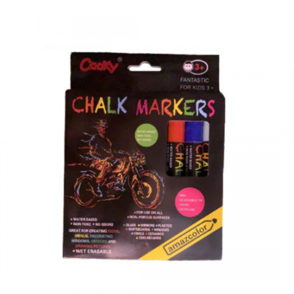 Meet the perfect baking accessory -- the Cooky Chalk Marker Pack. This 8-piece set contains an array of vibrant colors to make your culinary creations stand out in style. It works on a variety of surfaces, from chalkboards to glass, effortlessly allowing you to express your creativity and unleash your imagination. Bake with flair today and get the Cooky Chalk Marker Pack.