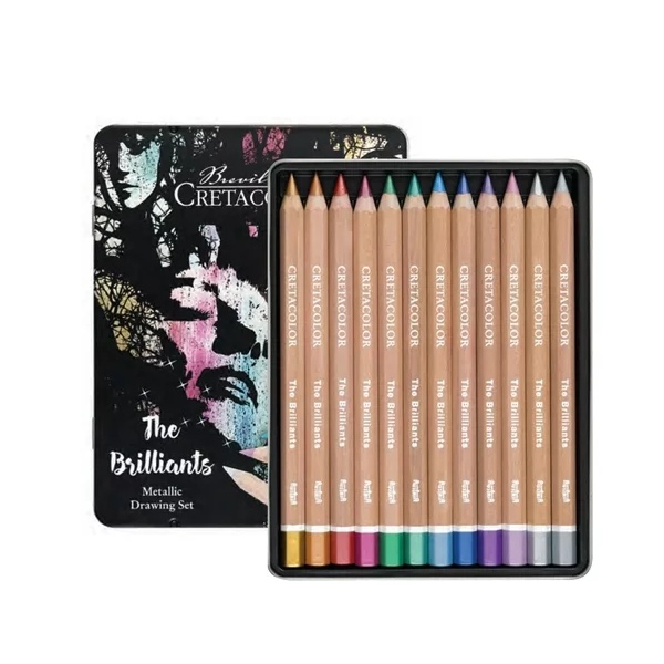 Elevate your artwork with Cretacolor The Brilliants, a set of 12 metallic color pencils. The vibrant colors and smooth blending capabilities will bring a touch of brilliance to your art. Perfect for adding shimmer and shine to your drawings, these pencils are a must-have for any artist's collection. Create stunning pieces with these high-quality, professional-grade pencils.