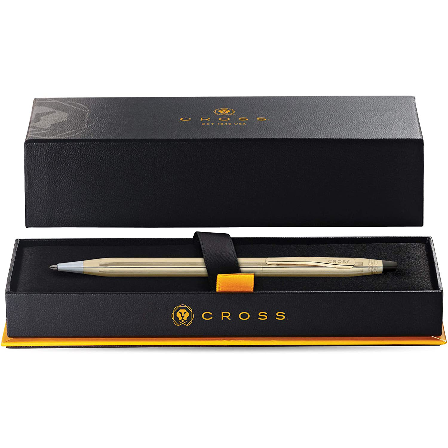 Elevate your writing experience with the Cross Classic Century 10KT Gold Filled & Rolled Gold Ballpoint Pen. Its sleek design, coupled with its luxurious 10KT gold and rolled gold finish, adds a touch of sophistication to any writing task. Upgrade your pen game and make a statement with Cross.