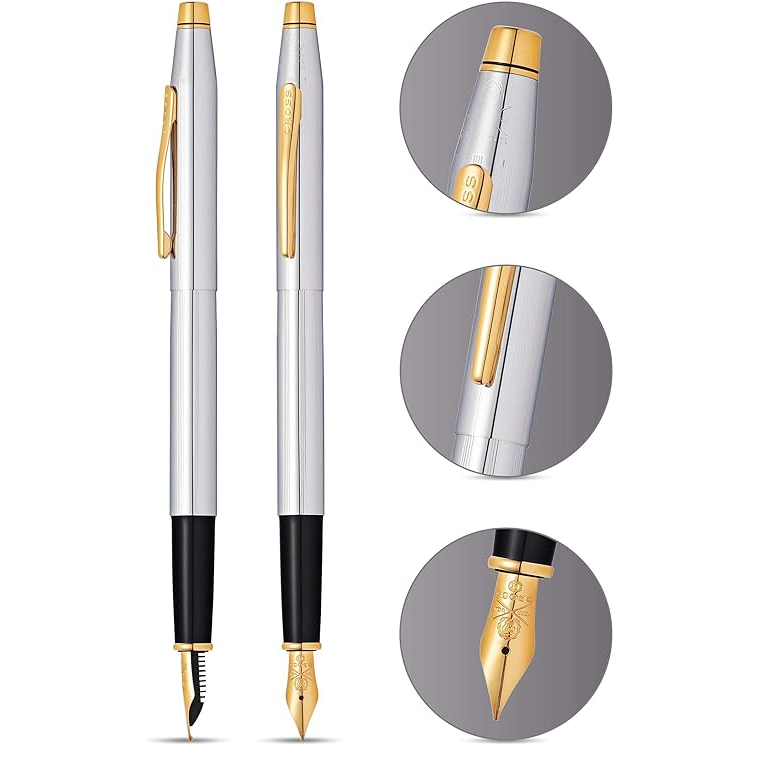 Experience the timeless elegance and effortless writing with the Cross Classic Century Refillable Fountain Pen. Its medium nib effortlessly glides on paper, creating smooth and consistent lines. With its medalist chrome finish, this pen is not only a writing tool but also a statement of sophistication.