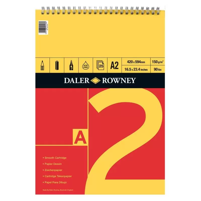 Daler Rowney Smooth Cartridge Paper Spiral Pads – 150Gsm 25 Sheets