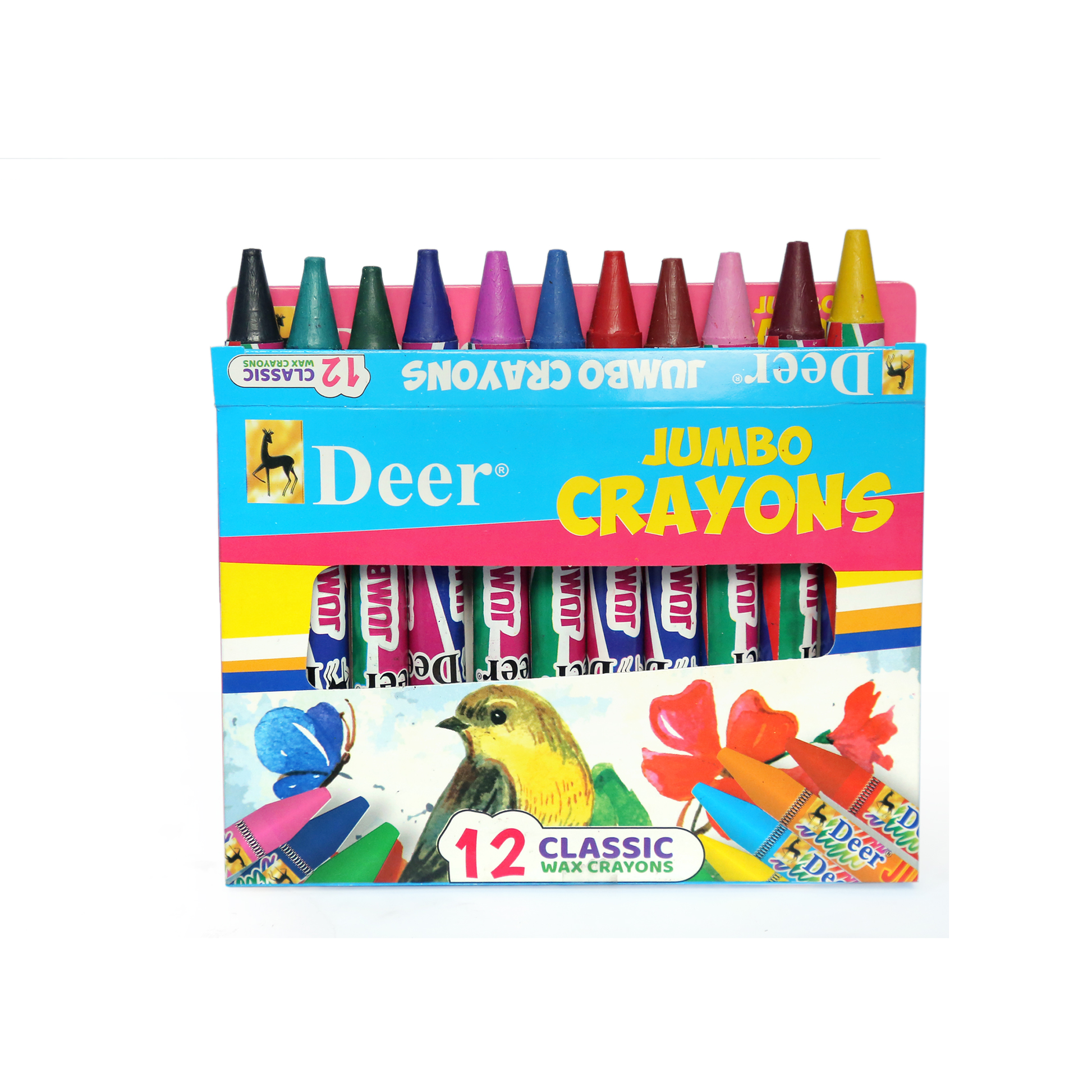 Unleash your child's creativity with Deer Jumbo Crayons 12 Color set! These large, easy-to-grip crayons are perfect for little hands and come in 12 vibrant colors. Encourage artistic expression while developing fine motor skills. Perfect for coloring, drawing and more!