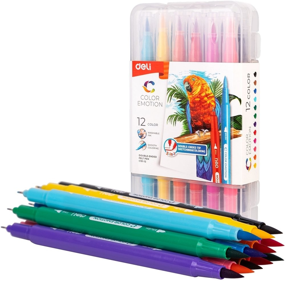 The Deli Dual Tip Felt Pen 12 Pcs (C10304) is your go-to for all your writing and drawing needs. With its double-sided tips, you can create both fine lines and bold strokes. Perfect for artists and students alike, this set of 12 pens offers a wide range of vibrant colors to bring your ideas to life.