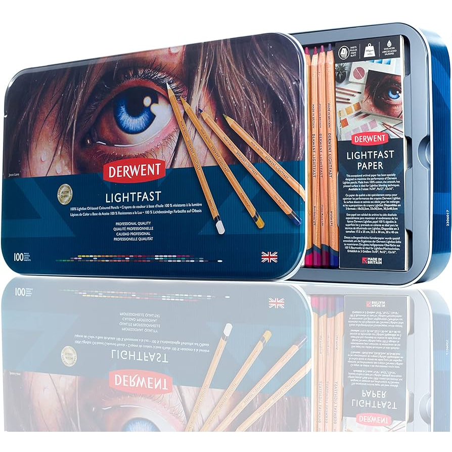 Our Derwent Lightfast Pencils provide 100% lightfastness, so your artwork stays vibrant for up to 100 years even under museum lighting. With 100 colors in each tin, our pencils are perfect for creating lasting, vibrant art.