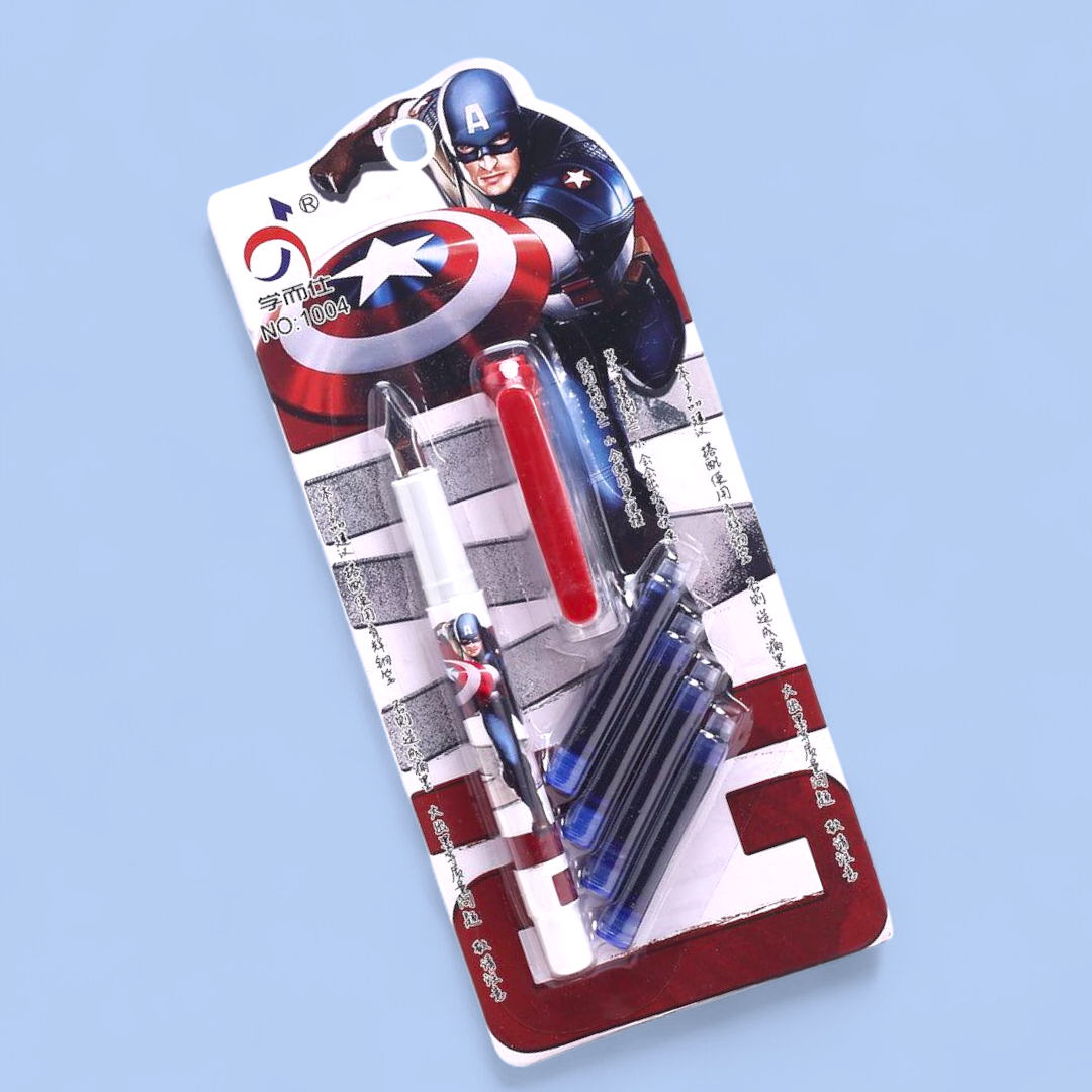 Discover the joy of writing with the Fountain Pen #1004. This high-quality pen features a unique design with Barbie, Spiderman, and Captain America motifs. Includes ink cartridges for effortless writing. Add a touch of creativity and personality to your writing experience with the Fountain Pen #1004.