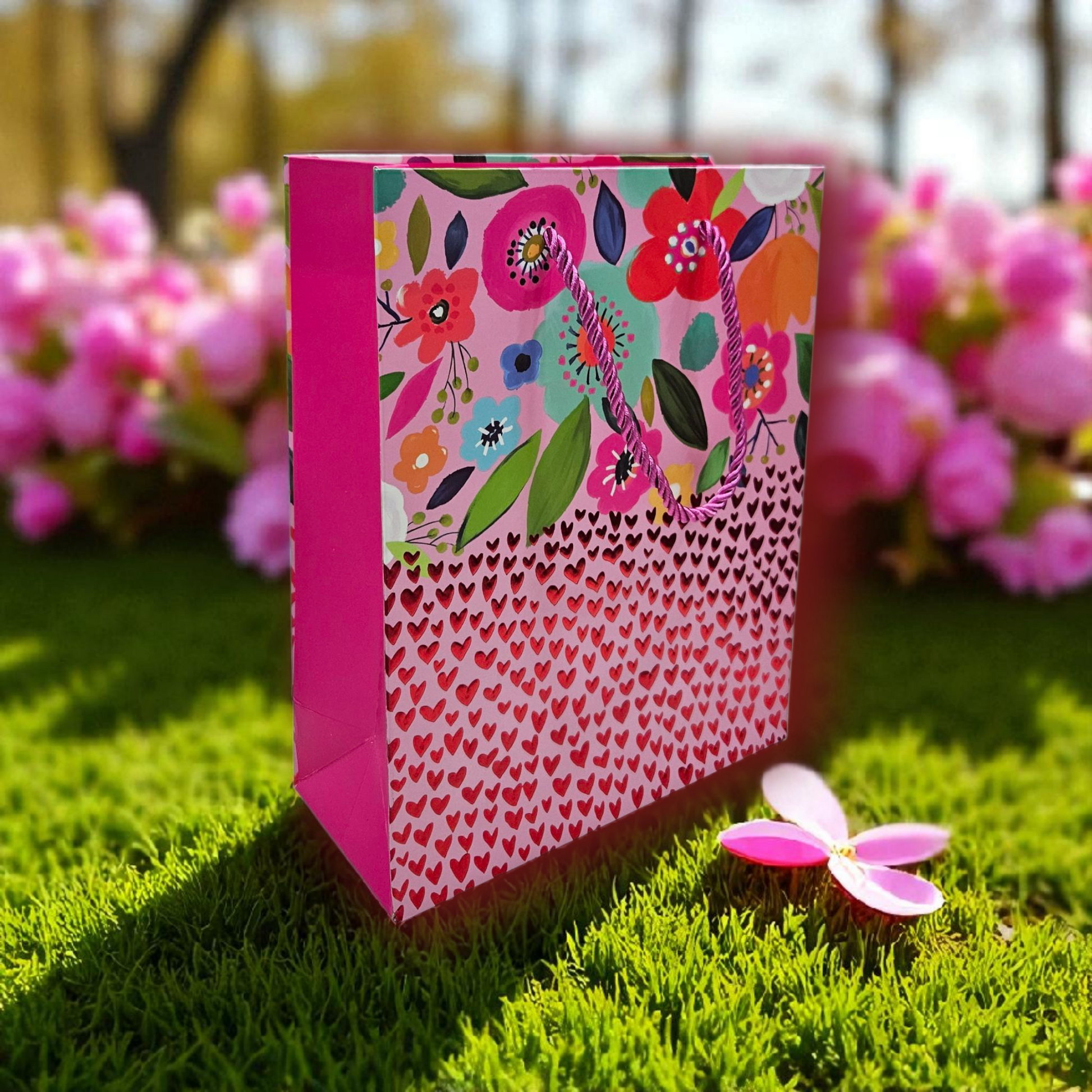 Introducing an elegant gift bag, made of imported handle dori , featuring stunning metallic pasting in emboss that showcases sophisticated and intricate designs. Ideal for adding a touch of luxury to any special occasion like birthday party, wedding, anniversary, result celebration, return party favours ,Teachers Day, father's day ,mother's Day, best friend gifts.