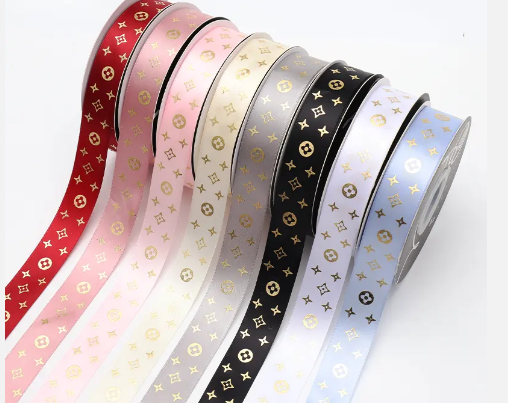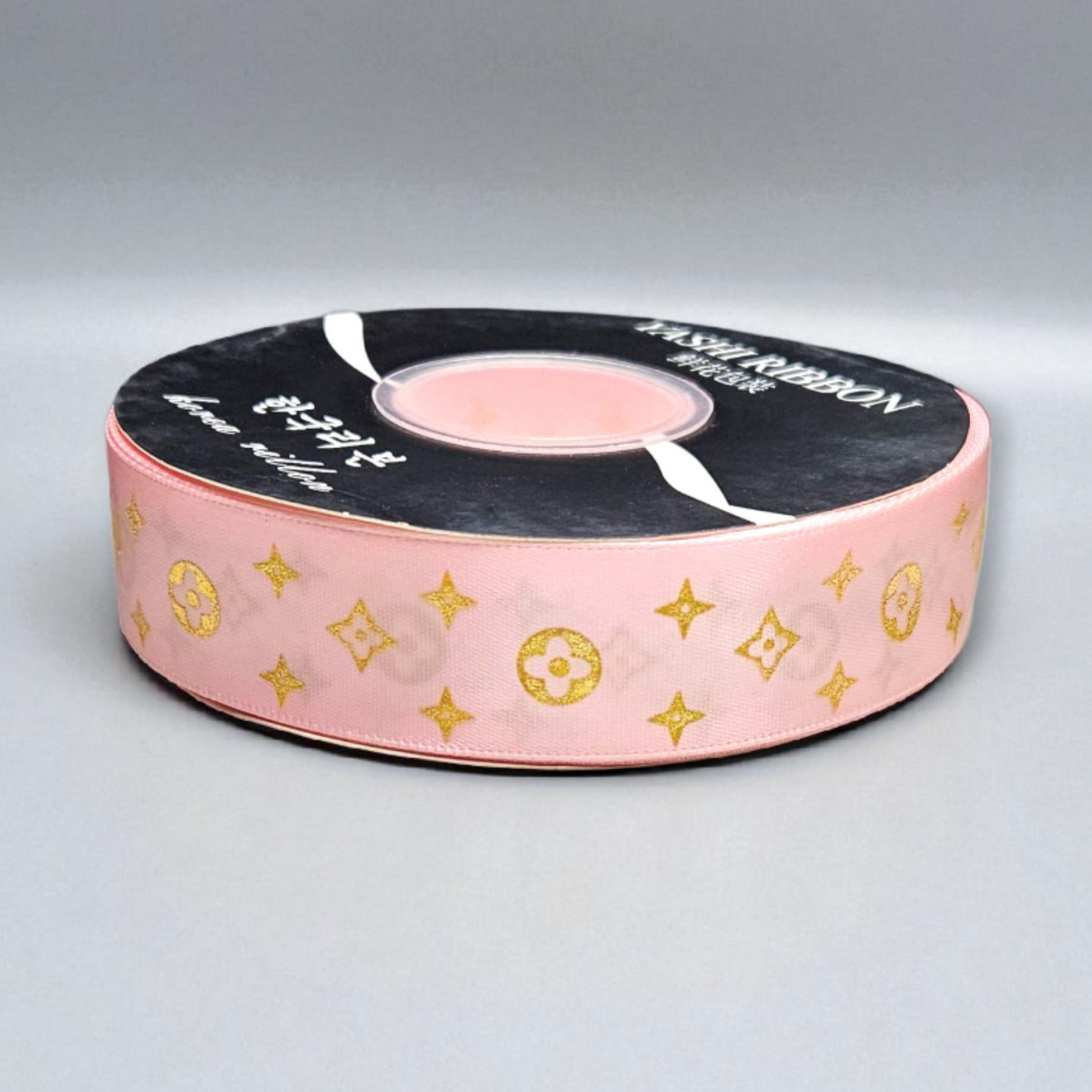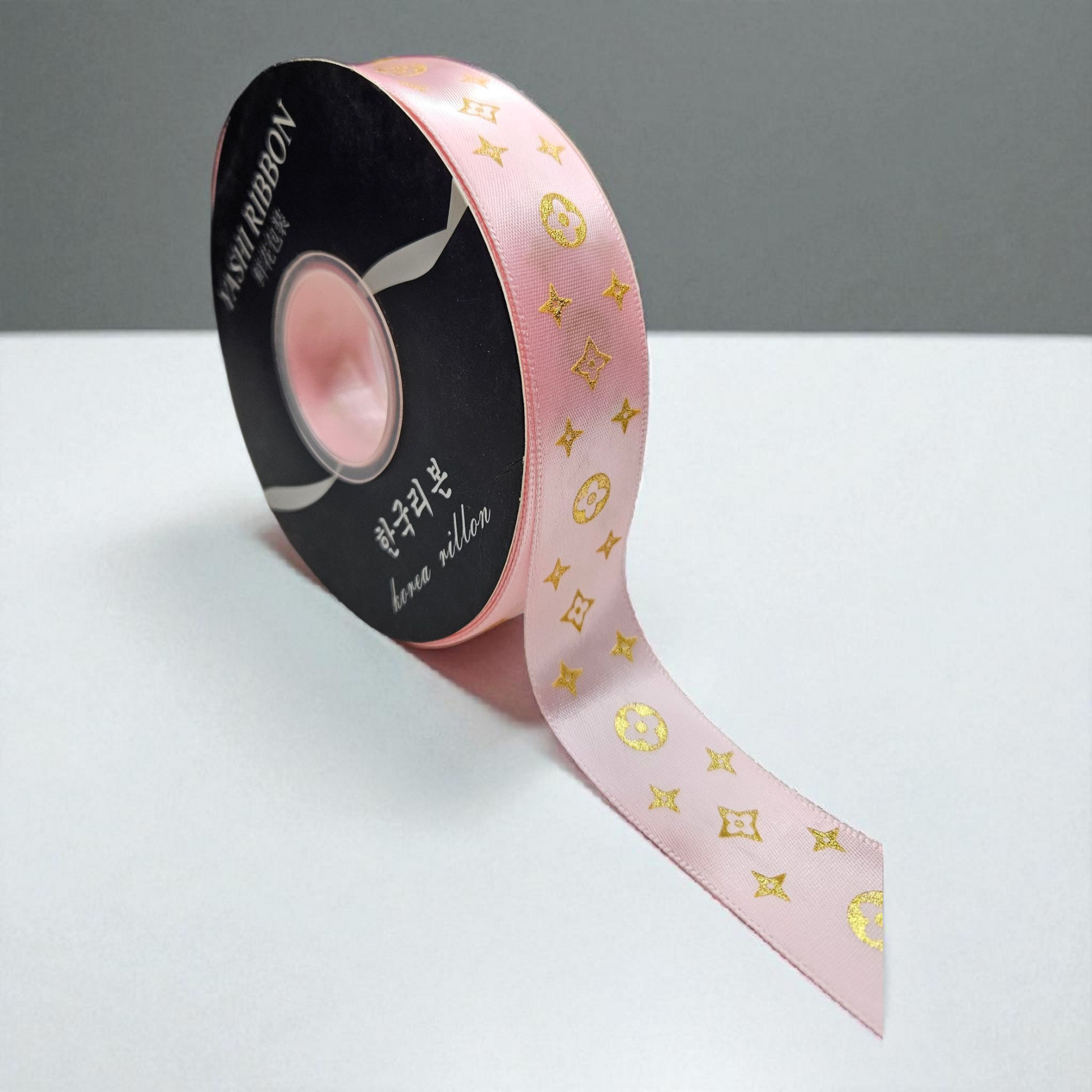 Imported LV ribbon, gold foil printed satin ribbon 35 yards, width