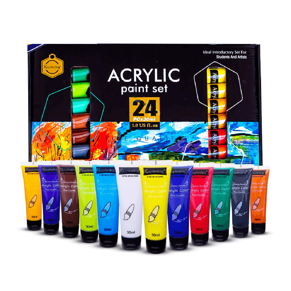 Create vibrant and long-lasting artwork with our Keep Smiling Acrylic Paint Set. Each 30ml tube is filled with high-quality, pigmented paint for smooth application and beautiful results. Perfect for artists of all levels, this set will bring joy to your creations and keep you smiling through the creative process.