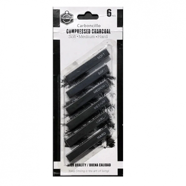 Create beautiful drawings with Keep Smiling-Compressed Charcoal Sticks Grande! This package contains 6 pencils in 3 different shades - Soft, Medium, and Harsh - making it the perfect choice for both experienced and beginner artists. Crafted with high-quality materials, get ready to add your own special touch to your art!