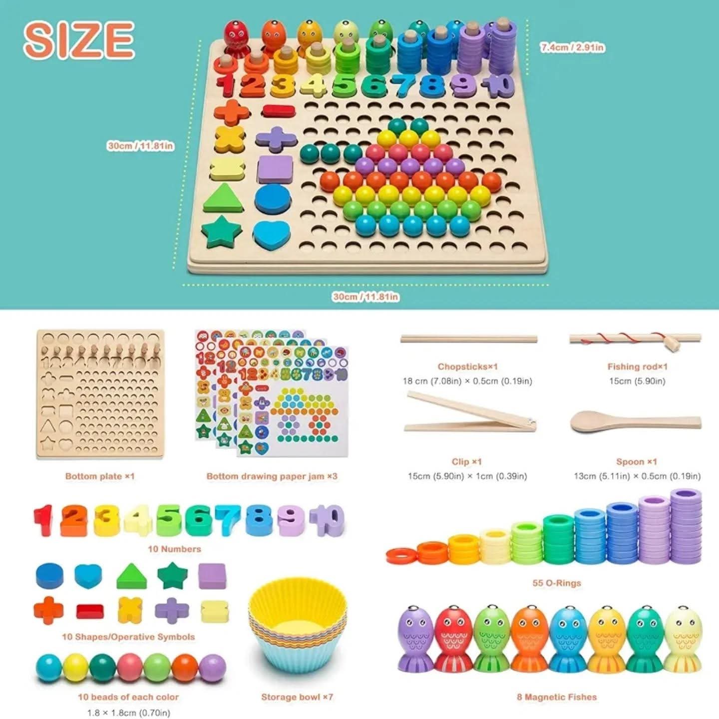 Kids Clip Bead Fishing Logarithmic Board 13 in 1