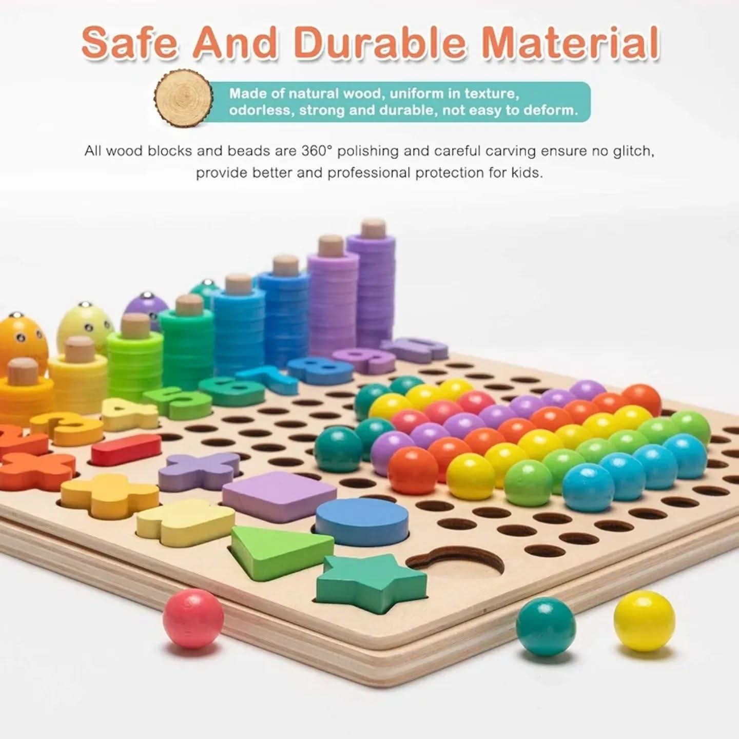 🟢 13in1 logarithmic board game can exercise kid's fine motor skills and self-learning ability. Matching beads jigsaw puzzle and color classification game can train hands-on ability and patience, promote recognition of colors and shapes.