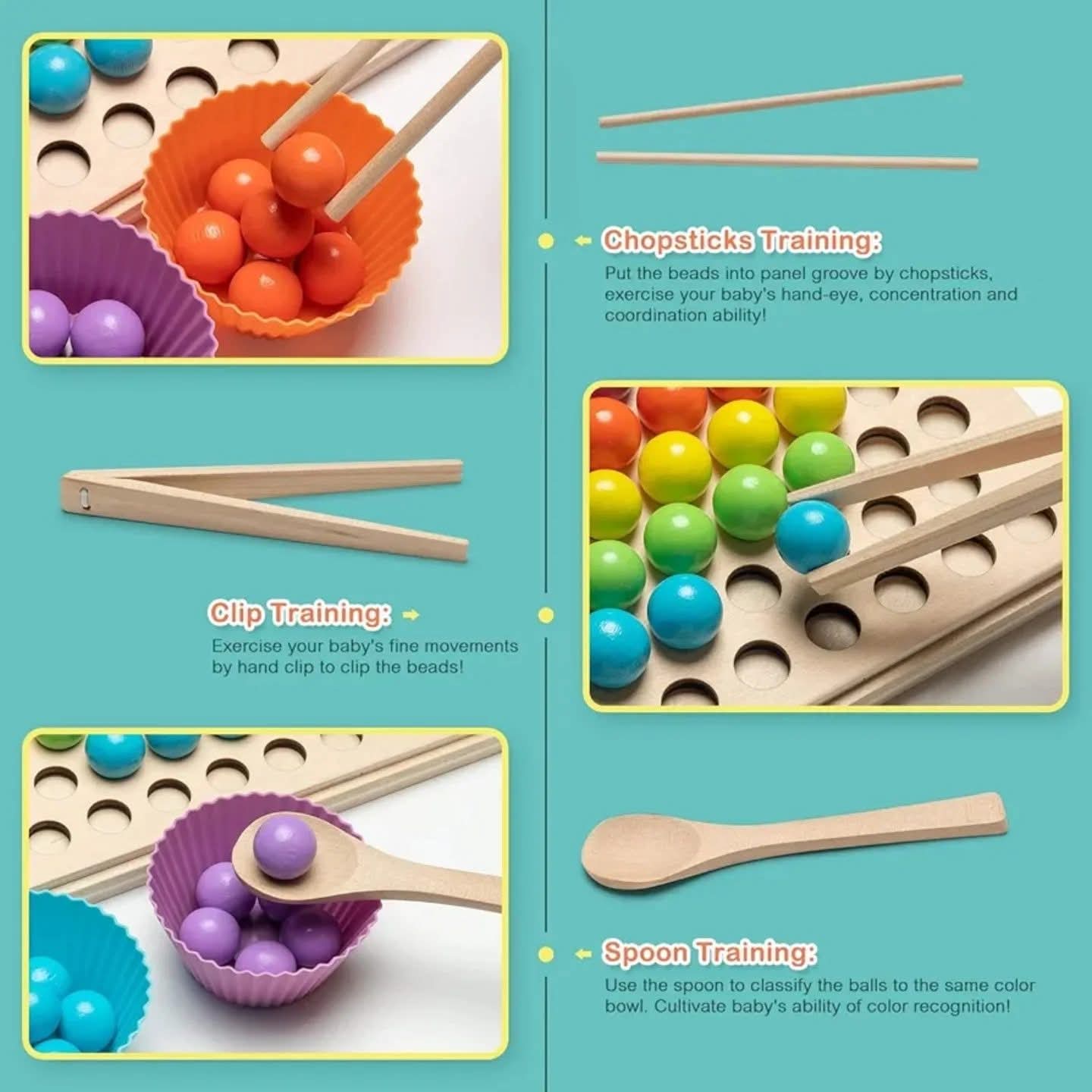 🟡Wooden spoon/clip/chopsticks game can exercise kid's grip ability and concentration. Digital arithmetic learning guides kids to know 1-10 numbers, integrate abstract mathematical concepts into simple and interesting toys, and make teaching vividly.