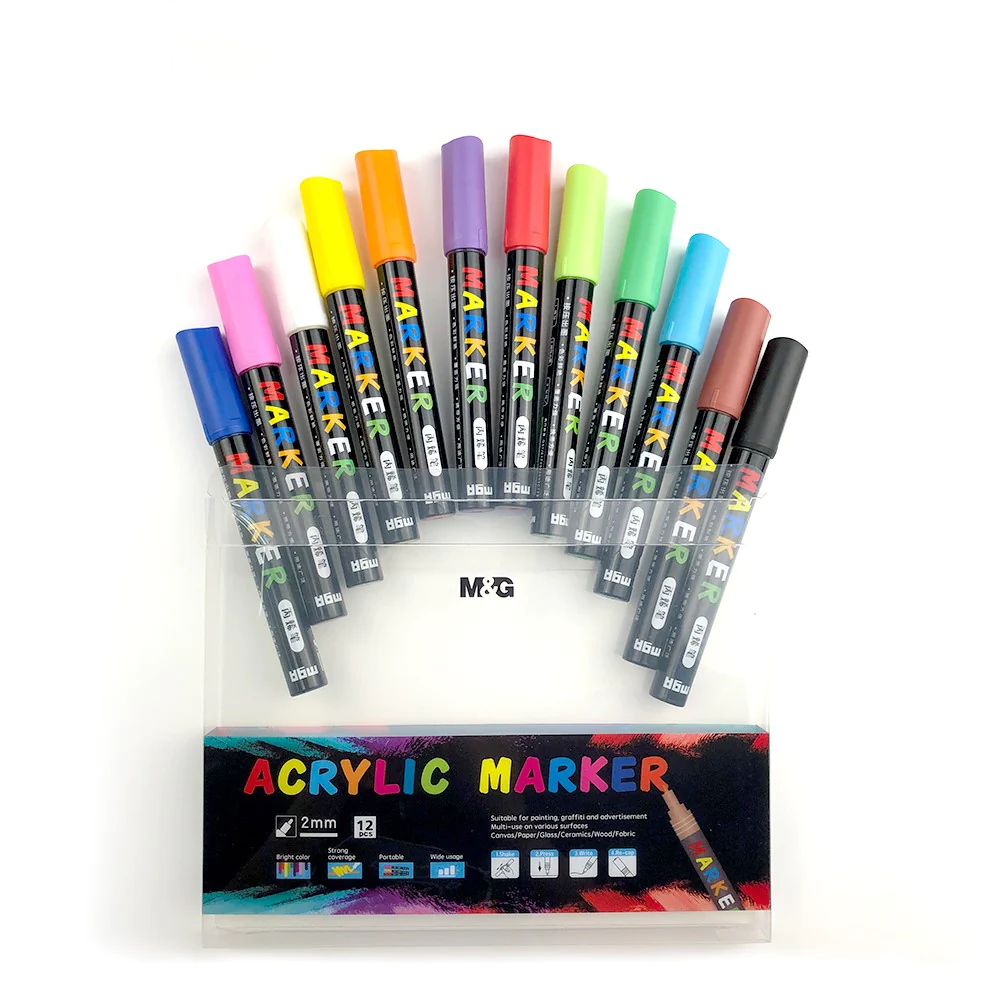 M&G Acrylic Marker 12 Color 2mm APL976EI