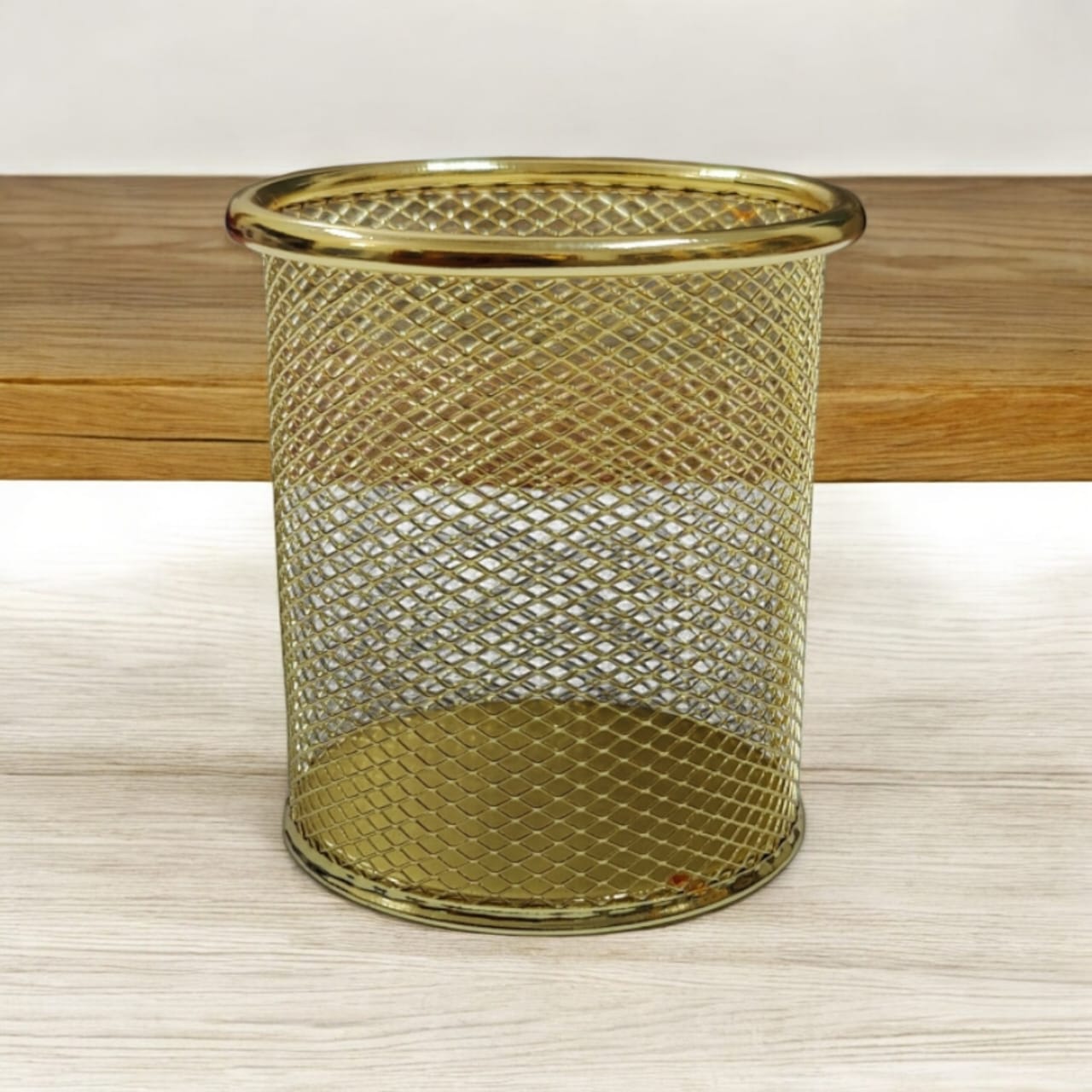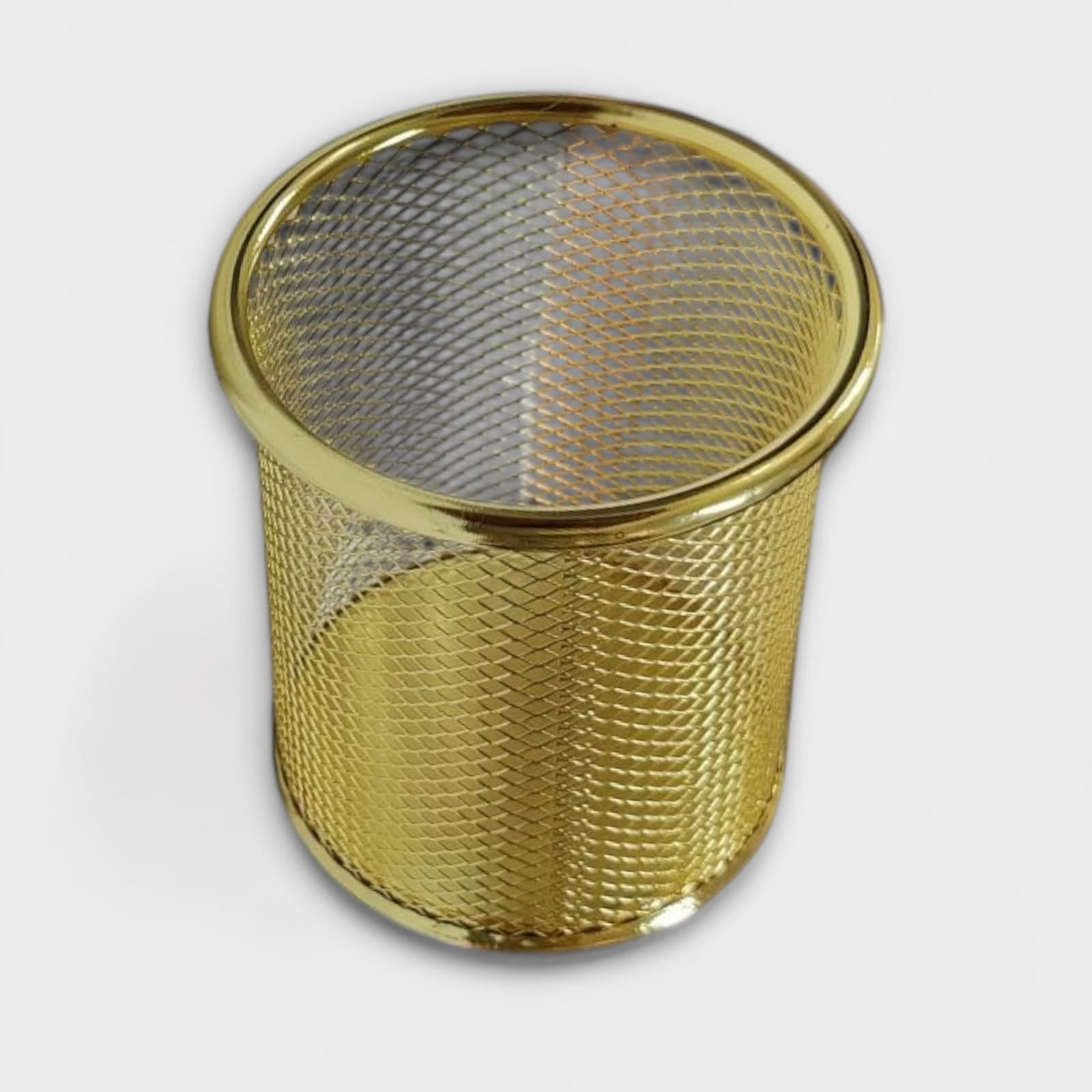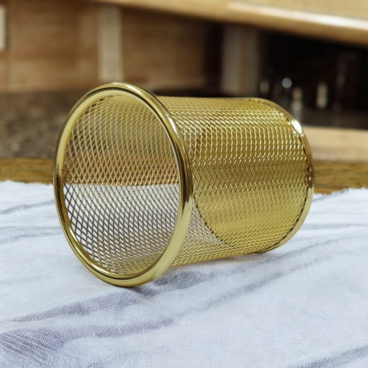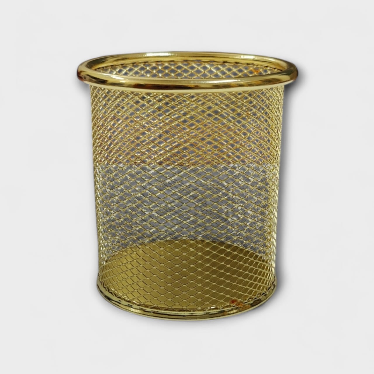 Keep your desk organized in style with our Metal Mesh Jar Golden. Made from high-quality metal mesh, this jar is durable and functional. Its stunning golden finish adds a touch of elegance to any workspace. Stay organized and elevate your desk decor with our Metal Mesh Jar Golden.