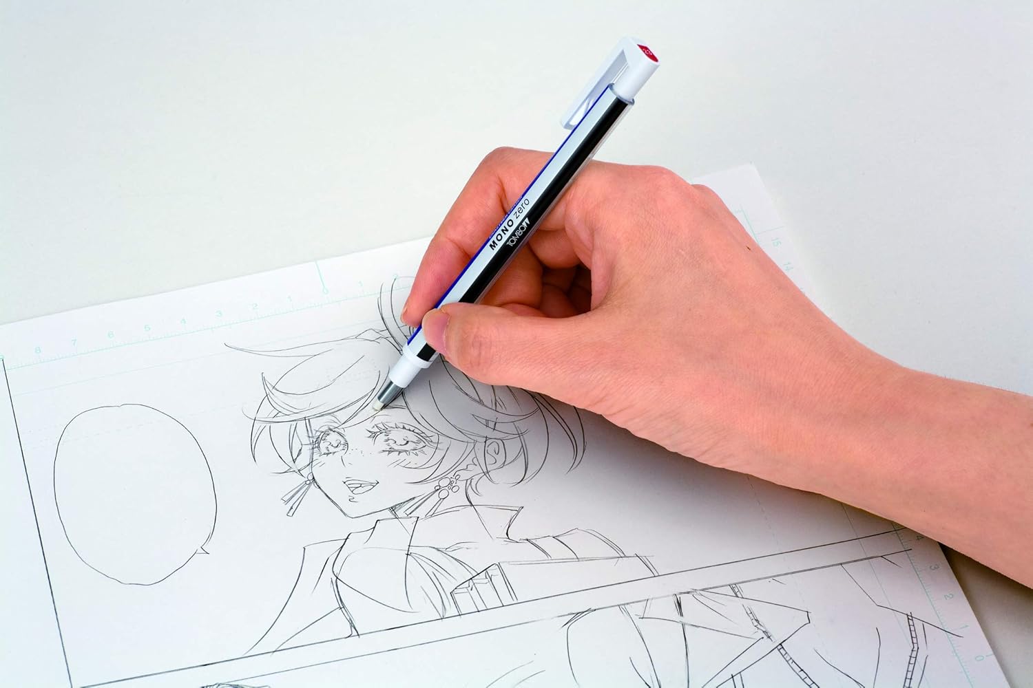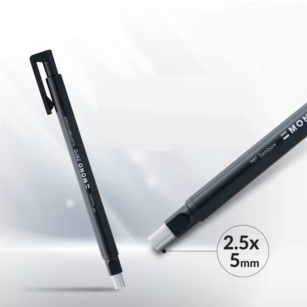 Experience precision and ease with the Mono Zero Click Eraser. Simply click to reveal this eraser's ultra-fine tip, perfect for detailed erasing and precise corrections. No need for messy shavings or sharpening, just enjoy effortless erasing with this must-have tool for any artist or perfectionist.