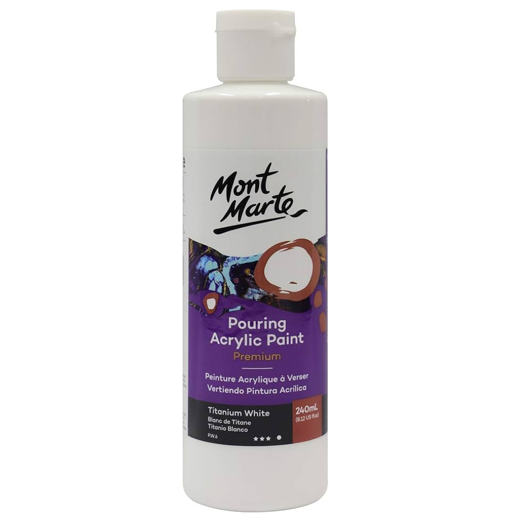 Upgrade your art game with Mont Marte Pouring Acrylic Tit White 240ml. Specifically designed for pouring techniques, this paint offers a smooth and vibrant finish. Get ready to unleash your creativity with this must-have addition to your art supplies.