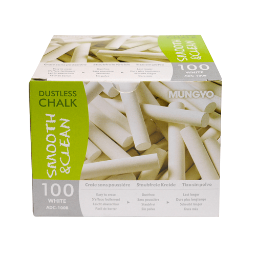 "Say goodbye to messy hands and dusty classrooms with Mungyo White Dustless Chalk. Its unique formula allows for smooth writing and easy erasing, providing a seamless learning experience. Give your students and teachers a clean and hassle-free chalk experience with Mungyo White Dustless Chalk."