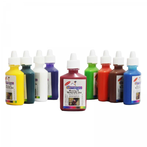 Omega Drawing Ink is easy to use and reliable for drawing and painting works. This water-proof ink is suitable for calligraphy, drawing, and art work and can be used on paper, acrylic sheet, and surfaces. It is opaque, non-fading and repeatable, with good light resistance and available in 12 basic colors.