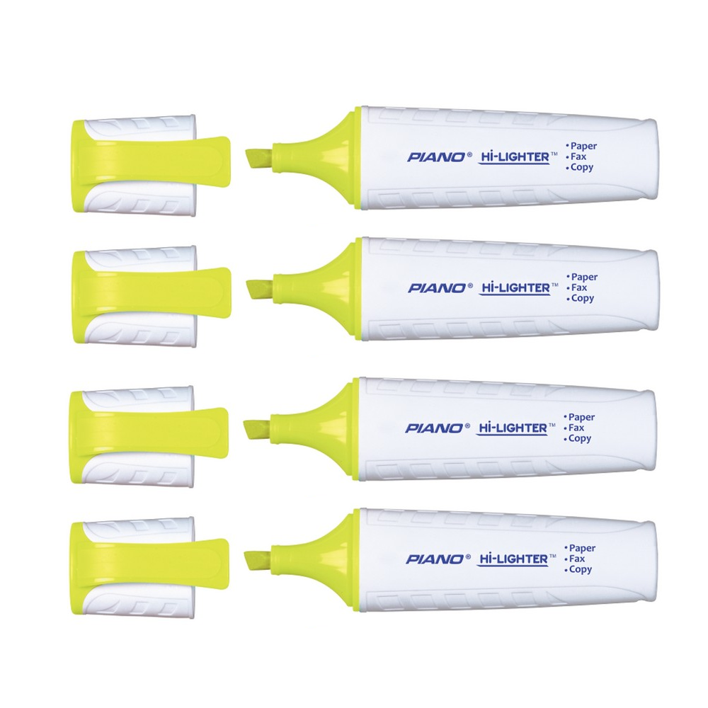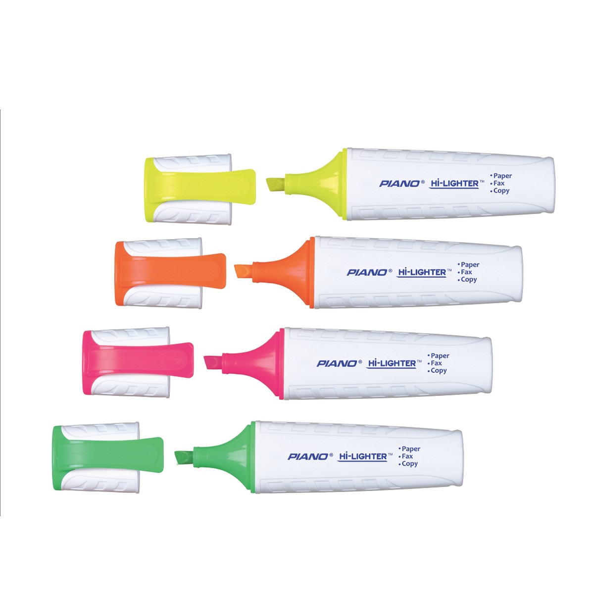 Introducing Piano Highlighter White Body Pack Of 4 Pcs, a must-have set for all your highlighting needs. With a sleek and sophisticated design, these highlighters will make your note-taking and studying experience more enjoyable. Each pack includes 4 vibrant and long-lasting colors. Perfect for students, professionals, and anyone who loves organizing with a pop of color.