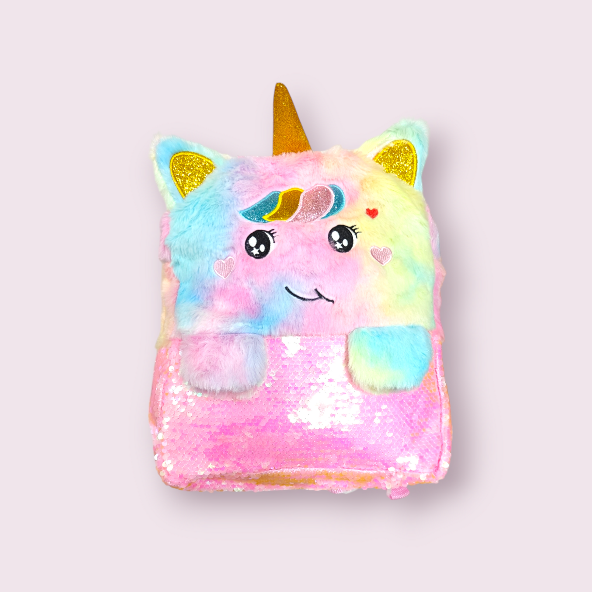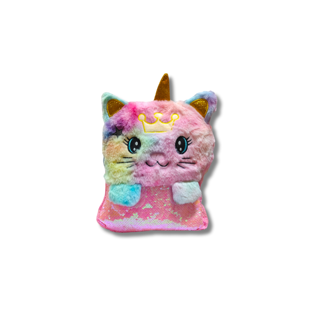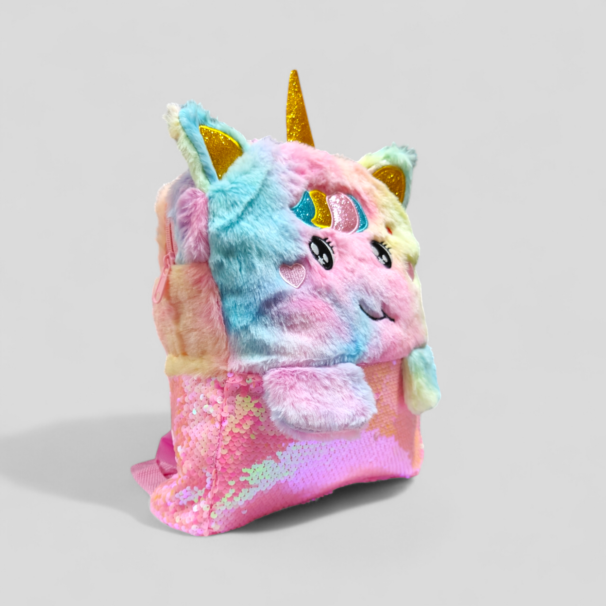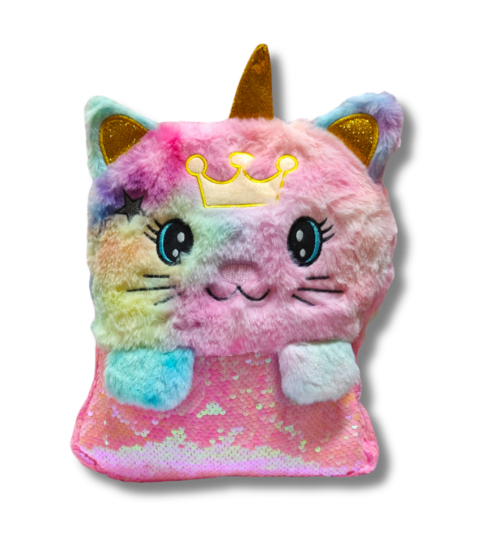 Fluffy fur unicorn/ kitty bagpack with sequins #8017 size 13 inches