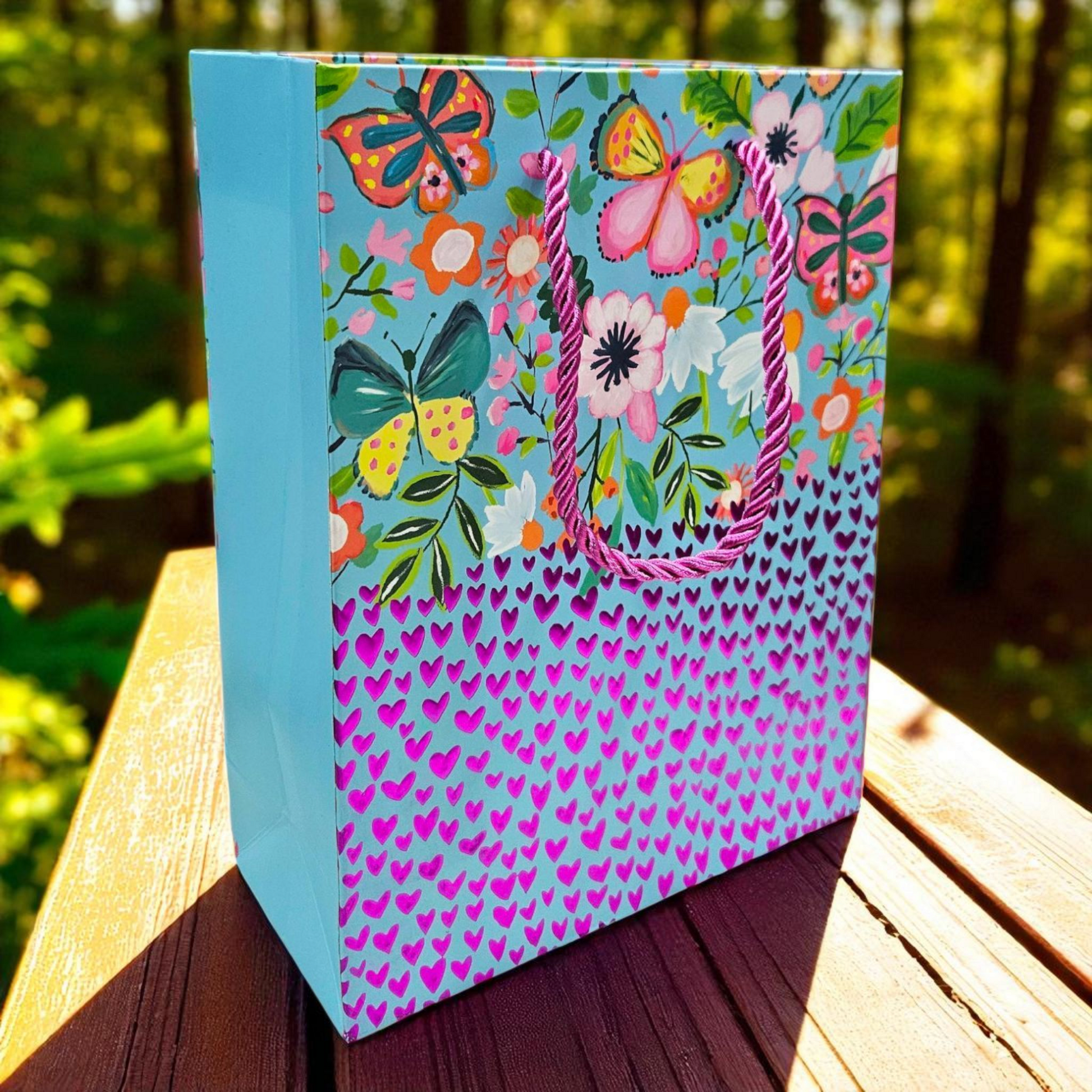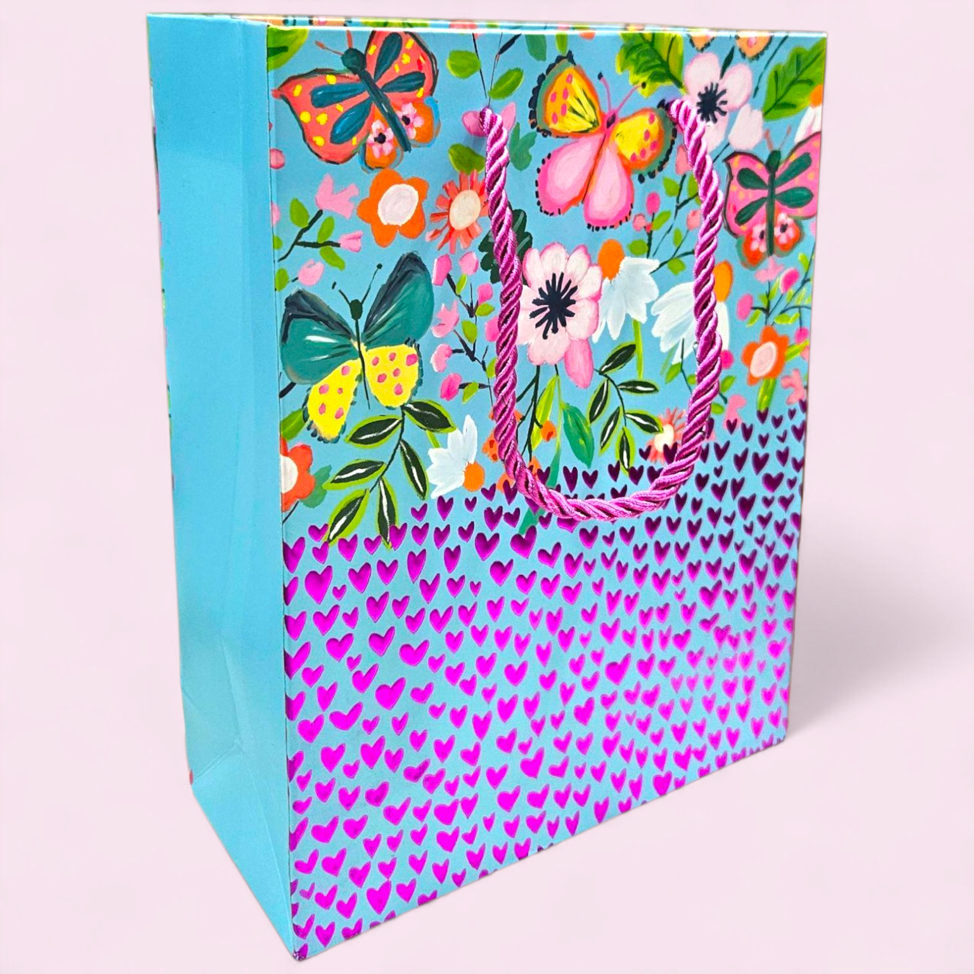 Pink metallic hearts embossed goodie bag