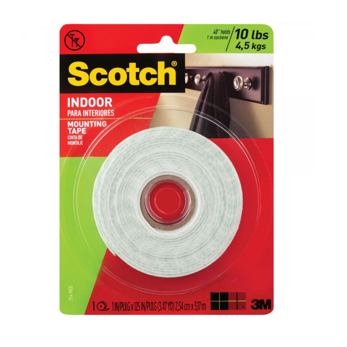 Secure your light to medium weight objects in an instant with Scotch Indoor Mounting Tape! This double-sided, high-density foam tape is equipped with a permanent mounting formula so that your items stay in place on both horizontal and vertical surfaces. Additionally, it features a permanent foam adhesive that won't be affected by moisture, heat or cold temperatures, ensuring a long-lasting bond.