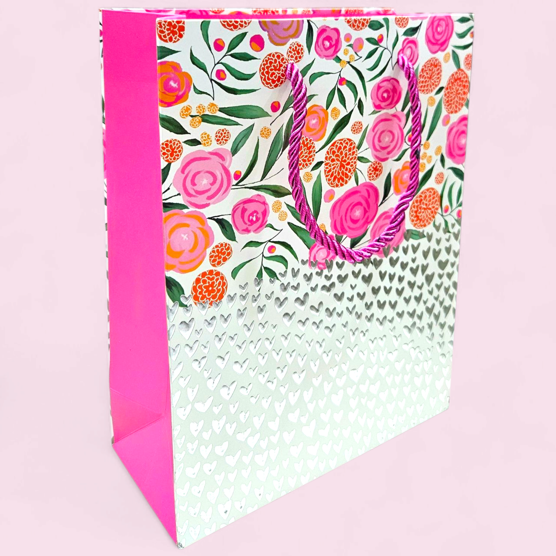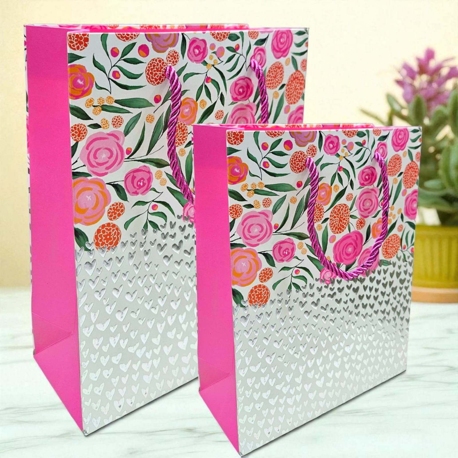 Introducing an elegant gift bag, made of imported handle dori , featuring stunning metallic pasting in emboss that showcases sophisticated and intricate designs. Ideal for adding a touch of luxury to any special occasion like birthday party, wedding, anniversary, result celebration, return party favours ,Teachers Day, father's day ,mother's Day, best friend gifts.