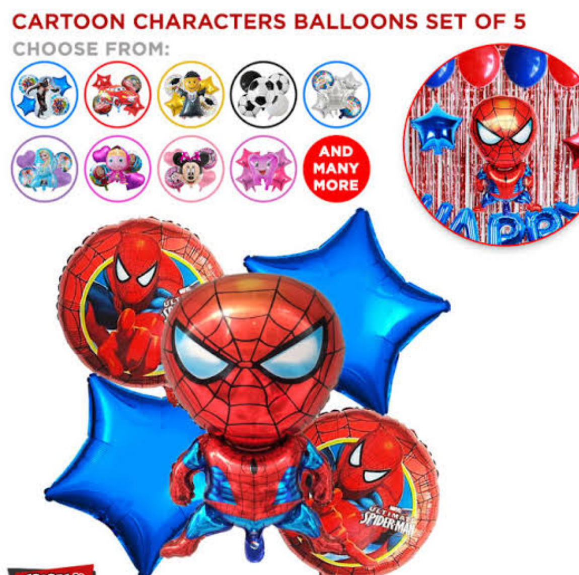 Spiderman Theme Foil Balloon Set - 5 Pieces for Theme Decoration and Celebration