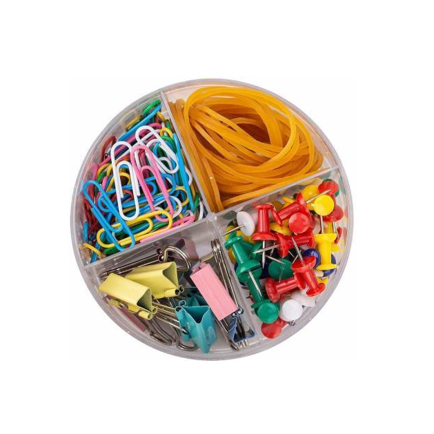 A Stationery Set 8500 with multi colors of pins and clips packed in a single box for easy storage and use in your office. Perfect for organizing documents and papers with ease. Get all your office items in one box!