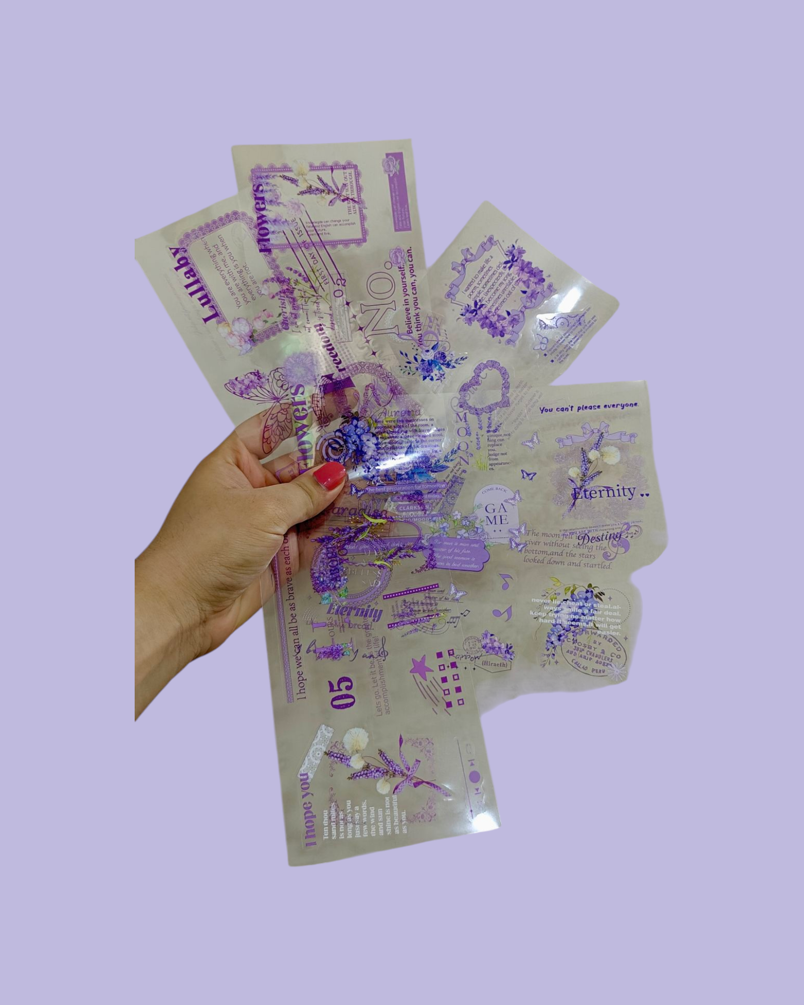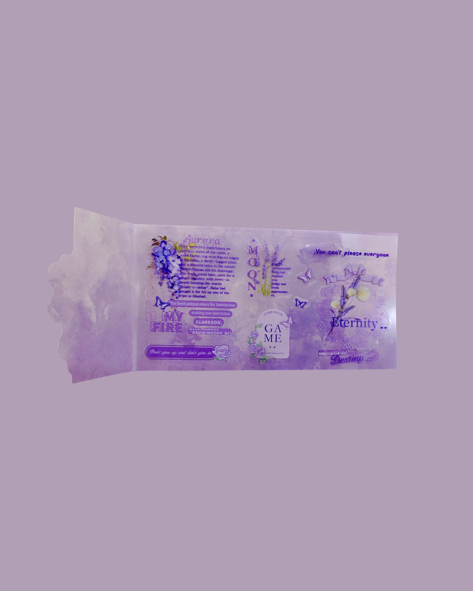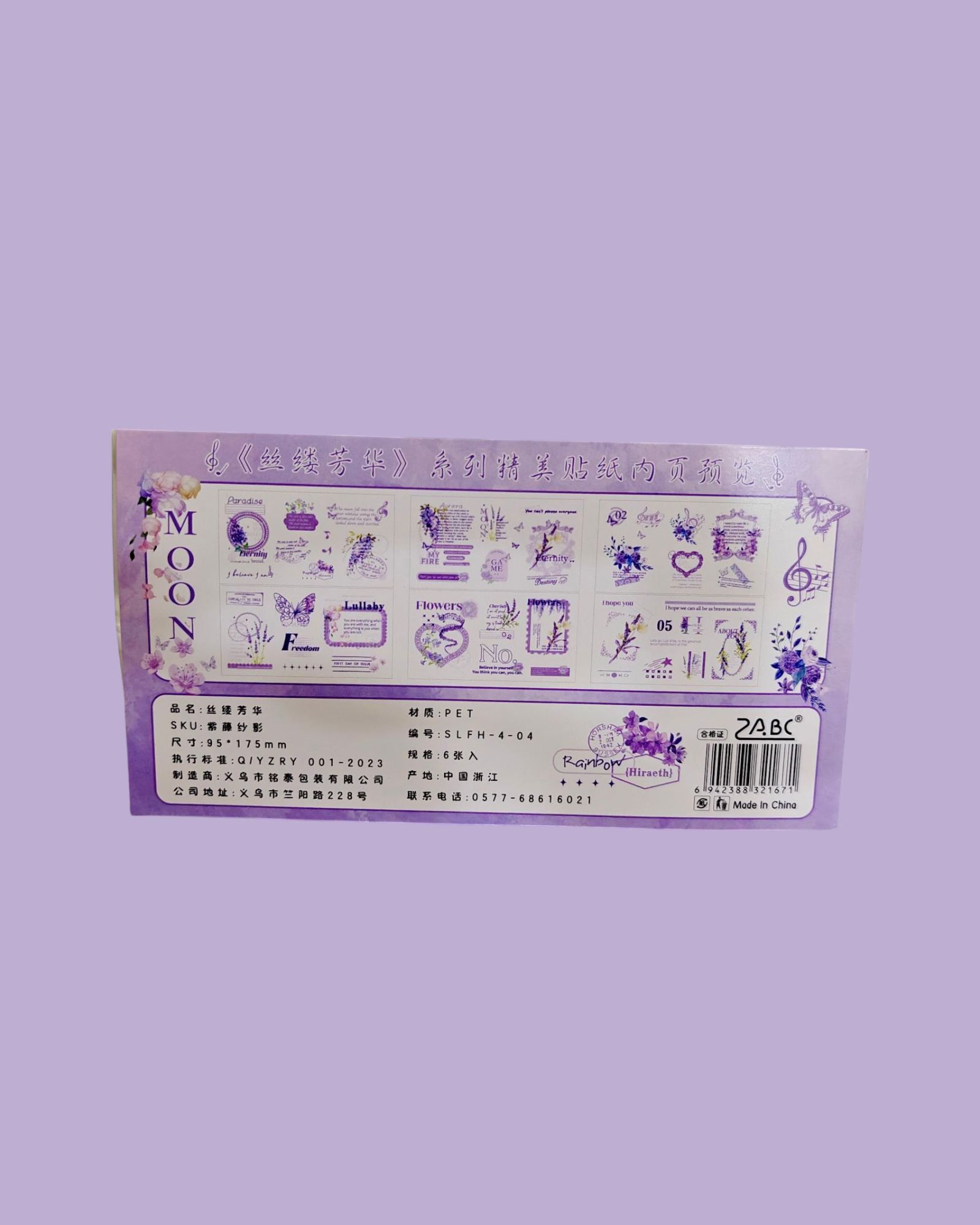 Elevate your journaling game with our beautiful Moon Theme Sticker Sheet! This stunning sheet features a variety of purple-themed stickers, including flowers, butterflies, and musical notes, perfect for adding a touch of elegance and whimsy to your journals, planners, and scrapbooks.