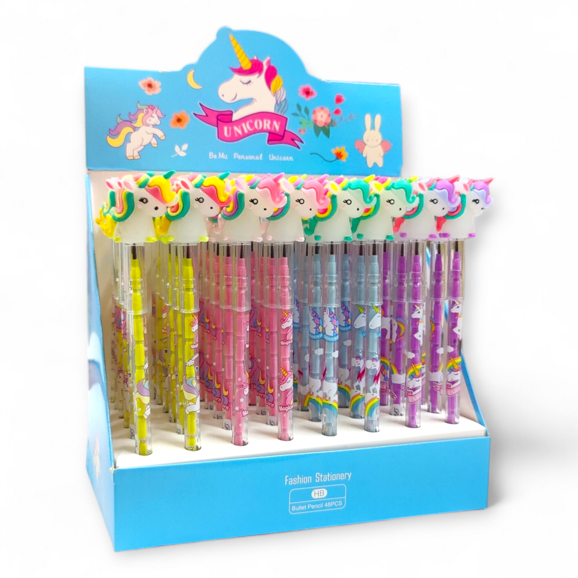 Elevate your writing game with the Unicorn Bullet Pencil! This magical pencil features a unique bullet design that allows for precise and effortless writing. The perfect companion for anyone looking to add a touch of whimsy to their writing routine. Say goodbye to dull pencils and hello to a world of creativity with the Unicorn Bullet Pencil.