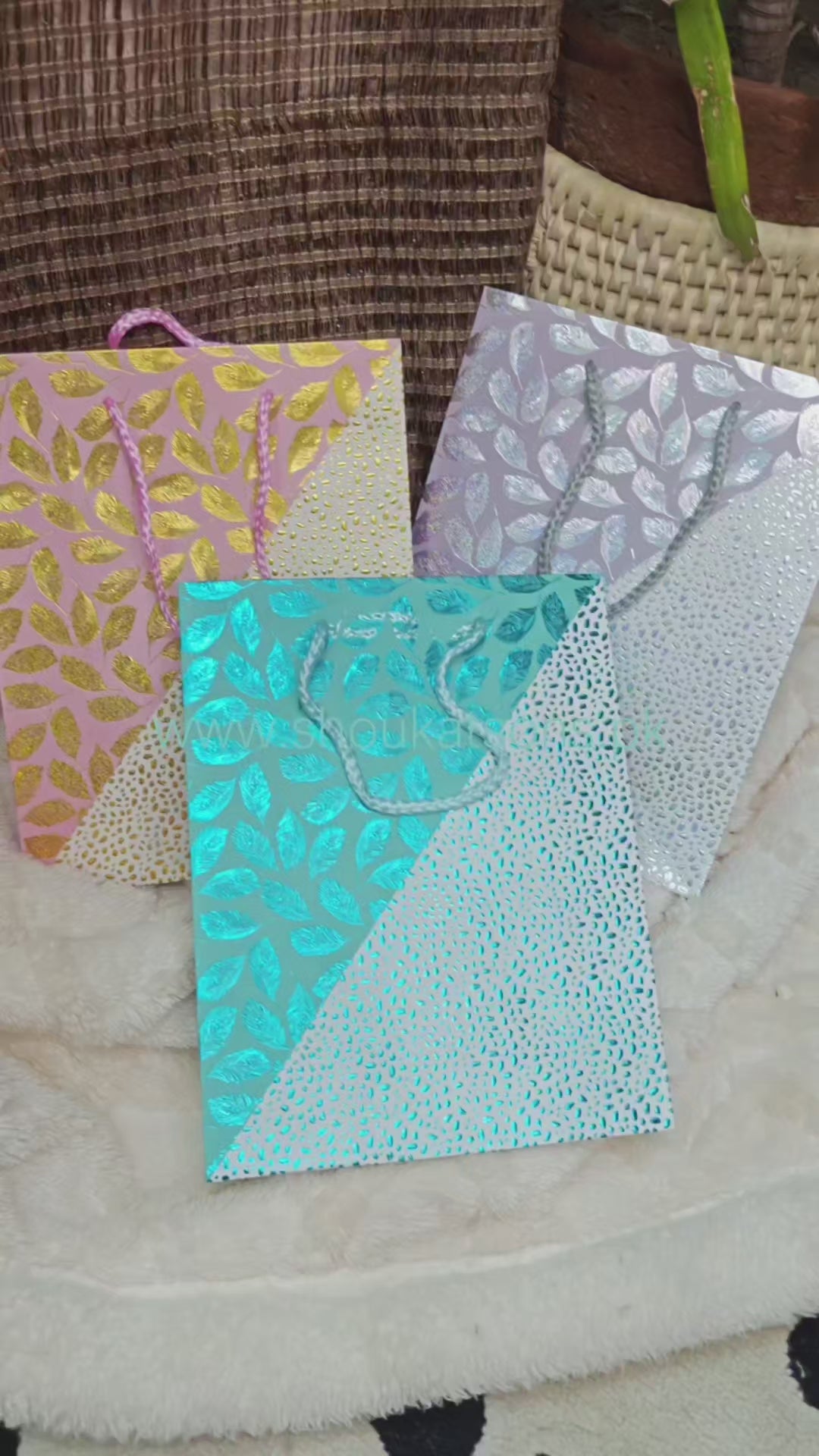 Introducing an elegant gift bag, made of imported handle dori , featuring stunning metallic pasting in emboss that showcases sophisticated and intricate designs. Ideal for adding a touch of luxury to any special occasion like birthday party, wedding, anniversary, result celebration, return party favours ,Teachers Day, father's day ,mother's Day, best friend gifts.